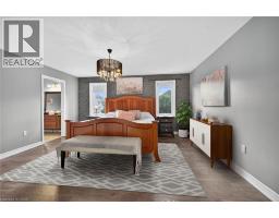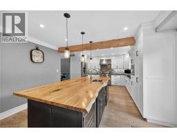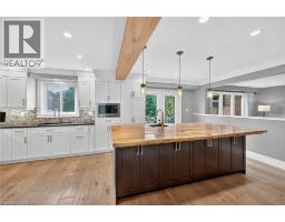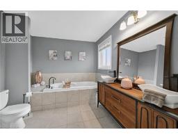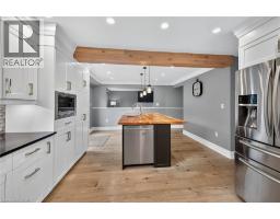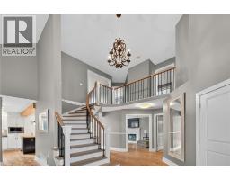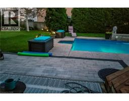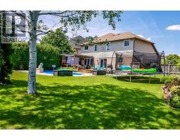 Situated on a spectacular pie-shaped lot in a sought-after Ancaster neighbourhood, this stunning home is nestled in a quiet court-like setting. nicely maintained & awaiting your cosmetic TLC, the 4-bedroom, 2.5-bathroom residence boasts an impressive array of renovations completed since 2015. Upon entering, you'll be struck by the vaulted ceilings, formal dining room, and beautiful semi-circular wood staircase with wrought iron spindles. The gourmet kitchen opens onto a private backyard oasis, complete with a saltwater pool featuring a tranquil waterfall, new pump, liner, heater, and winter safety cover, as well as a brand-new hot tub, large patio, deck, trellis, and privacy fencing, all set on maintenance-free artificial grass. The upper floor features 4 generous bedrooms, including a master suite with a glamorous ensuite bath and spacious walk-in closet. The 3 other bedrooms share a beautiful bathroom with glass shower & double custom vanity. The finished basement provides ample space for a variety of uses, including a Games room, potential theatre room or teen retreat, a large recreation room & roughed-in 3-piece bath awaiting your imagination. The oversized 2.5-car garage offers ample parking and storage. This property's location is ideal, being close to major highways, Ancaster shopping centres, schools, parks, and public transportation. (id:50886)