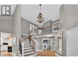 Situated on a spectacular pie-shaped lot in a sought-after Ancaster neighbourhood, this stunning home is nestled in a quiet court-like setting. Well maintained, the 4-bedroom, 2.5-bathroom residence boasts an impressive array of renovations completed since 2015. Upon entering, you'll be struck by the vaulted ceilings, formal dining room, and beautiful semi-circular wood staircase. The gourmet kitchen opens onto a private backyard oasis, complete with a saltwater pool featuring a tranquil waterfall, new pump, liner, heater, and winter safety cover, as well as a brand-new hot tub, large patio, deck, trellis, and privacy fencing, all set on maintenance-free artificial grass. The upper floor features 4 generous bedrooms, including a master suite with a glamorous ensuite bath and spacious walk-in closet. The 3 other bedrooms share a beautiful bathroom with glass shower. The finished basement provides ample space for a variety of uses, including a Games room, potential theatre room or teen retreat, a large recreation room & roughed-in 3-piece bath awaiting your imagination. The oversized 2.5-car garage offers ample parking and storage. This property's location is ideal, being close to major highways, shopping centres, schools, parks, and public transportation (id:50886)