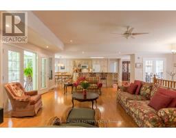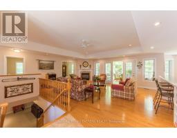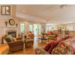 Welcome to this custom-built, all-brick executive bungalow, offering nearly 4,000 sq ft of impeccably designed living space on a breathtaking treed and landscaped property. Privately set surrounded by nature, this residence blends refined elegance with everyday functionality. Step inside to a sun-filled, open-concept great room, where tray ceilings and a cozy gas fireplace set the stage for gatherings. The adjoining formal dining area flows seamlessly into the gourmet eat-in kitchen, complete with a centre island, built-in wine racks, and thoughtful finishes tailored to the culinary enthusiast. A wall of windows draws you into the three-season sunroom, a serene retreat with a walkout to the expansive wrap-around deck perfect for soaking in the beauty of the surrounding landscape. The primary suite is private featuring 5-piece ensuite with heated floors, a walk-in closet, and another walkout to the deck. A second bedroom enjoys private access to the main 4-piece bath, while a versatile den/office, convenient 2-piece powder room, and main-floor laundry add to the homes thoughtful design. The triple-car garage is fully insulated and accessible through the mudroom, offering convenience. The lower level recreation room features a second gas fireplace, and games area with pool table perfect for entertaining. The third bedroom connects to 3-piece bath. Another walkout takes you directly to the landscaped backyard oasis. This remarkable property offers privacy, tranquility, and beauty at every turn. Mature trees, curated gardens, and abundant wildlife create a peaceful backdrop for daily living, making this an ideal home for those who value both style and serenity. Bethany is a picturesque village known for its rolling hills, trails, and warm community feel. With quick access to Highway 7A and 115, commuters will appreciate the easy connections to Peterborough, Durham, and the GTA. (id:50886)