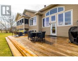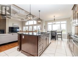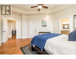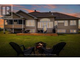 Welcome to this stunning custom-built home with 4,500 sq ft of living space, offered by the original owners and nestled in the prestigious West Lake Estates. With exclusive access to the tranquil communal lake, this home offers the perfect blend of elegance, functionality, and comfort. From the moment you step into the bright and airy foyer, you're greeted by timeless architectural details including arched doorways, rich maple hardwood floors, and an exquisite empire coffered ceiling. The heart of the home is the chef's kitchen, featuring quartzite countertops, sleek maple cabinetry with abundant storage, a professional-grade Frigidaire thermal refrigerator, and a convenient walk-in butler's pantry that connects seamlessly to the formal dining room complete with water views and a recessed ceiling for added sophistication. The primary suite offers a peaceful retreat with a generous walk-in closet and a luxurious 5-piece ensuite, including dual vanities, a soaker tub, and a glass walk-in shower. Two additional main-floor bedrooms boast picturesque lake views and share a stylish Jack-and-Jill bathroom with double sinks. Practicality meets beauty with a large mud/laundry room and a charming screened-in porch, perfect for quiet mornings or entertaining. Expansive back windows flood the living spaces with natural light and open to a sprawling deck, ideal for hosting under the open sky. The lower level is a haven for relaxation and entertainment, featuring warm maple floors with in-floor heating, a spacious billiards room, and a cozy theatre room. A fourth bedroom with a walk-in closet and rough-in for a bathroom provides additional flexibility. Ample storage rooms, a massive cold storage, and direct garage access complete the lower level. This impeccably maintained home combines elegance and efficiency in a coveted lake community. $200.00 annual co-tenancy fee for lake maintenance. Ecoflo sustainable septic system. (id:50886)