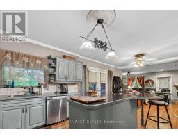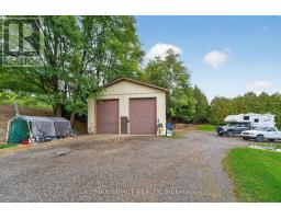 Picturesque, Peaceful, Country Living just minutes from the 407. This Spacious two-story home sits on 13.67 Scenic Acres. Set Back from the road surrounded by mature trees. Owner currently rents the front 3 bedroom section of the house for $1,750/per month, tenant would like to stay, vacant possession is possible. Large primary rooms, one pellet stove, one wood stove. Have your in-laws live in the open concept 1 bedroom lower level area with separate entrance, property enjoys large open space with lean to shed where horses have resided. Workshop, metal sided, 31x30', fully insulated, heated, hydro, water. Loft on upper right side, two 10x14' overhead doors, ample parking, & access from both roads. Property has large areas of manicured lawns. Included; 2 propane furnaces 2021, two electric water heaters 2021, two air conditioner units 2021, fenced in dog run. Home roof is 2014. (id:50886)