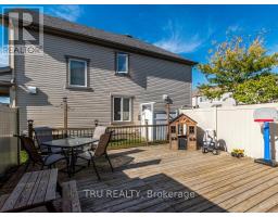 Located in the desirable Half Moon Bay community, this well-maintained Mattamy Queenscliffe model offers 3 bedrooms and 2.5 bathrooms. Sitting on a corner lot, this end-unit townhouse features a bright, open layout with large windows and plenty of natural light throughout. The main level includes an open-concept kitchen with ample cabinetry, a generous living and dining area, and a comfortable family room with hardwood floors. Upstairs offers a convenient laundry area, a versatile den, and three spacious bedrooms, including a primary suite with a private ensuite bathroom. The finished basement provides additional living space, along with a dedicated storage room and a handy workbench perfect for hobbies or projects. Outdoor highlights include a wraparound porch, a large back deck ideal for BBQs and family gatherings, and generous garden beds ready for spring planting. The home is also wired for an electric vehicle charger. Close to parks, schools, public transit, and amenities, with walking trails and the river nearby. (id:50886)