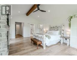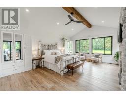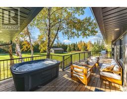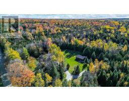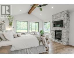 TURNKEY BUNGALOW ON 2+ ACRES WITH HOT TUB, WALKOUT BASEMENT, DECK & DESIGNER FINISHES! Its easy to describe what the dream home looks like: private acreage, a backyard escape with a massive deck and hot tub, bold curb appeal that turns heads, and a fully finished bungalow with a walkout basement loaded with upscale finishes. This place delivers every single one of those boxes checked! This absolute knockout sits on over two landscaped acres just 15 minutes from Orillia, surrounded by mature trees, apple trees, lush greenery, and trilliums. Expect daily deer sightings, the occasional owl call, and jaw-dropping sunsets. The exterior makes a statement with rich wood beams, black-trimmed windows, board-and-batten-style vinyl siding, and a covered front porch. A detached 4-car garage/shop adds function with a large overhead and separate man door. Over 2,800 square feet of renovated living space showcases crown moulding, pot lights, luxury vinyl flooring, neutral tones, and elevated finishes throughout. The kitchen stuns with white cabinetry, quartz counters, open wood shelving, stainless steel appliances, and a wood-toned island with breakfast bar seating. The dining area is wrapped in black-framed windows and four-panel garden doors, two of which open wide to the deck for serious indoor-outdoor flow. The living room offers everyday comfort with a floor-to-ceiling stone propane fireplace, built-ins, and an inviting layout. The vaulted primary suite pulls out all the stops with wood beam accents, a second fireplace, a walkout, a luxurious 5-piece ensuite, and dual wardrobe systems, plus a closet. Downstairs, the walkout basement adds a bright rec room, full bath, two additional bedrooms, and a gorgeous laundry room with live-edge style counters and subway tile. The backyard is the final exclamation point with an elevated deck, hot tub, wide staircase to the lawn, mature trees, and a storage shed. Nothing overlooked. Nothing left to do. Just move in and start living! (id:50886)