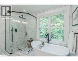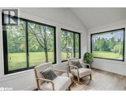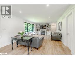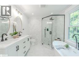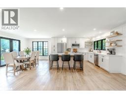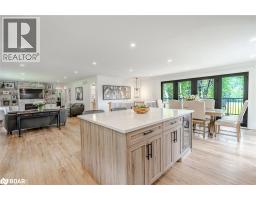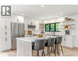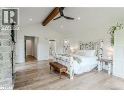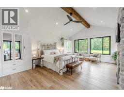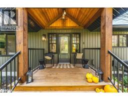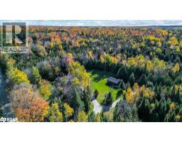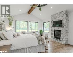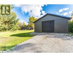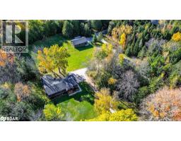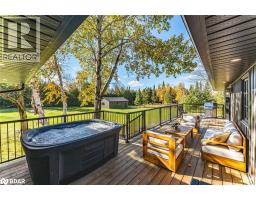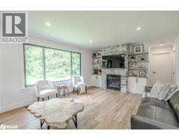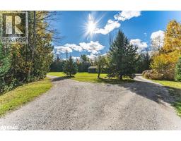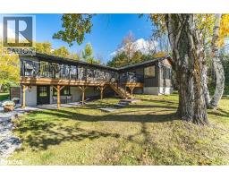 TURNKEY BUNGALOW ON 2+ ACRES WITH HOT TUB, WALKOUT BASEMENT, DECK & DESIGNER FINISHES! It’s easy to describe what the dream home looks like: private acreage, a backyard escape with a massive deck and hot tub, bold curb appeal that turns heads, and a fully finished bungalow with a walkout basement loaded with upscale finishes. This place delivers every single one of those boxes checked! This absolute knockout sits on over two landscaped acres just 15 minutes from Orillia, surrounded by mature trees, apple trees, lush greenery, and trilliums. Expect daily deer sightings, the occasional owl call, and jaw-dropping sunsets. The exterior makes a statement with rich wood beams, black-trimmed windows, board-and-batten-style vinyl siding, and a covered front porch. A detached 4-car garage/shop adds function with a large overhead and separate man door. Over 2,800 square feet of renovated living space showcases crown moulding, pot lights, luxury vinyl flooring, neutral tones, and elevated finishes throughout. The kitchen stuns with white cabinetry, quartz counters, open wood shelving, stainless steel appliances, and a wood-toned island with breakfast bar seating. The dining area is wrapped in black-framed windows and four-panel garden doors, two of which open wide to the deck for serious indoor-outdoor flow. The living room offers everyday comfort with a floor-to-ceiling stone propane fireplace, built-ins, and an inviting layout. The vaulted primary suite pulls out all the stops with wood beam accents, a second fireplace, a walkout, a luxurious 5-piece ensuite, and dual wardrobe systems, plus a closet. Downstairs, the walkout basement adds a bright rec room, full bath, two additional bedrooms, and a gorgeous laundry room with live-edge style counters and subway tile. The backyard is the final exclamation point with an elevated deck, hot tub, wide staircase to the lawn, mature trees, and a storage shed. Nothing overlooked. Nothing left to do. Just move in and start living! (id:50886)