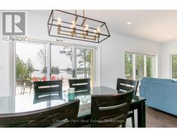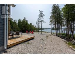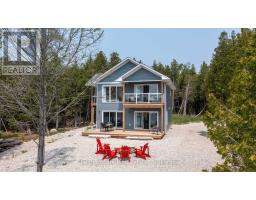 This modern build is situated on almost an acre of property with approximately 100' of Lake Huron shoreline on prestigious Eagle Road and is designed to compliment the simply outstanding views & sunset lit skies. Built in 2021, this 2 story home or cottage is completed with 3 bedrooms all with private deck access and water-views. Convenient 3 bathrooms including a bright & beautiful ensuite off the primary bedroom. An open concept main level design featuring a combined kitchen with large dining island, dedicated dining space and great room with cozy propane fireplace and loads of windows. All rooms have stunning view of the Lake. The Dining and Great room have oversized patio doors leading to expansive waterside deck making entertaining inside or outside a breeze. Down by the water you will find a large firepit area and easy accessible shoreline perfect for kayakers, swimming or try your luck at bass fishing in this great inlet off Lake Huron. Gentle stream runs along one side of the property enhancing the nature sounds in this little sliver of heaven. Invite your friends and family to spend time with you at this fabulous home & perhaps rent the property as short term accommodations as it has a great history of strong income. Located approximately 15 minute drive to the village of Tobermory and close to many other nearby attractions. (id:50886)