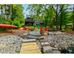 Custom built one owner South West facing Year Round Lake Muskoka beauty ideally located between Beaumaris and Port Carling on 101 Ft. (assessed) of mainland shoreline with year round municipal road access. Gentle topography, towering trees, handsome architecture. A most rare & value-packed, 1st ever offering. Built by "Lakeridge Developments" in 2017, the 3 bedroom plus a den, plus an office, plus a loft, gorgeous family cottage or year round home, features all the modern comforts, with approx. 2,500 sq. ft. of finished living space, 2 classic Muskoka stone propane-burning fireplaces, random width red pine flooring throughout, and a finished lower level walkout. Cleverly designed, brilliant main floor layout captures glimpses of water views, with south-west oriented principal rooms for loads of natural light. Stunning chef's kitchen with custom cabinetry, centre island w/granite top, opening to the dramatic 1 1/2 storey great room with fireplace, wall of windows, and walkout to a lakeside deck. Dining area, laundry room, powder room, and primary bedroom with its own private deck, 4 pc. ensuite with double sinks, and walk-in closet, are also located on the main floor. Attached garage with inside entry. Large loft with separate sitting room. Finished lower level walkout boasts warm hardwood floors, raised above a heated crawl space, with centrepiece family room with wet bar, another stone fireplace, lakeside bedrooms, 3 pc. bath, plus a den and an office. Gentle level grounds with ample table land, fire pit spot, covered hot tub deck, and dock with deeper and shallower water. All the practical living features and facets have been well thought-out and infused into the design. Complete w/full back-up Generac, drilled well, efficient propane furnace, central air, and all the "bells". This is a turnkey, virtually new, customized to perfection, lake front hideaway in one of the most desirable locales of Lk. Muskoka. Minutes to shopping, dining, golf, and all the amenit (id:50886)