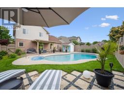 Stylishly Updated for Modern Living! Located in Guelphs sought-after south end, this beautifully upgraded home offers over 3,000 sqft of finished living space, including 3 bedrooms and 4 bathrooms perfect for todays busy family. With undeniable curb appeal, the home welcomes you with a charming covered porch and double-door entry into a bright, inviting foyer. The first floor boasts soaring 9-foot ceilings and hardwood floors, which continue throughout the second level. The formal dining room sets the tone for elegant entertaining, featuring full-height paneling, crown molding, and a striking contemporary chandelier.The heart of the home is the showstopping eat-in kitchen, complete with two-tone cabinetry, quartz countertops, stainless steel appliances, and a sunny breakfast area with walkout to the backyard. A cozy family room anchored by a gas fireplace and custom built-in bookshelves is the perfect space to unwind. Upstairs, rich hardwood flooring continues throughout, leading to the luxurious primary suite with a bay window, walk-in closet, and a spa-like 5-piece ensuite featuring a jetted Jacuzzi tub.The fully finished basement offers exceptional flexibility ideal for a home office, gym, playroom, or guest suite, complete with a full bathroom. Outside, the fully fenced yard is your private retreat, featuring an in-ground pool, mature landscaping, covered patio area, and an insulated pool house with hydro. Recent updates include a new pool liner, cover, heater, and equipment, as well as updated windows, furnace, AC, staircase, flooring, kitchen cabinetry, and much more!Located minutes from schools, parks, amenities, and the 401 this home truly has it all. (id:50886)