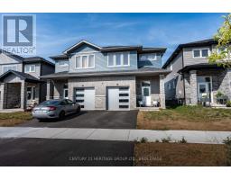 Welcome to this beautifully crafted semi-detached home offering a seamless blend of modern comfort, stylish finishes, and unbeatable location. Featuring 3 generously sized bedrooms, 2.5 bathrooms, and a single-car garage, this home is designed to fit your lifestyle. The bright and open-concept main floor showcases rich hardwood flooring, soaring 9-foot ceilings, and expansive windows that invite natural light into every corner. The upgraded kitchen is a standout, complete with quartz countertops and brand-new stainless-steel appliances, including a fridge, stove, and dishwasher, perfect for hosting or enjoying quiet family meals. Upstairs, the oak staircase leads you to a thoughtfully designed second level featuring a convenient laundry room with a full-size washer, dryer, and sink. The primary bedroom boasts a luxurious ensuite and a spacious walk-in closet, while the secondary bedrooms are ideal for kids, guests, or a home office. Step outside to a huge backyard, a rare find offering endless possibilities for relaxing, gardening, or entertaining. Additional features include central air conditioning, an oak staircase, and a fantastic layout filled with natural light. Located just minutes from Hwy 401 and Hwy 402, this home is only 1015 minutes from Queens University, St. Lawrence College, Royal Military College, Kingston General Hospital, downtown Kingston, Lake Ontario, and major shopping destinations like Costco, Walmart, and The Home Depot. You're also within easy reach of Belleville in just 3540 minutes. Whether you're upsizing, downsizing, or investing, this home is the perfect mix of quality, location, and value. Don't miss your chance to own a piece of Kingston's growing future! (id:50886)