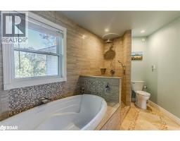 CUSTOM-BUILT RETREAT WITH 3,100+ SQ FT, DUAL GARAGES, SIGNIFICANT UPDATES & STEPS TO LAKE MUSKOKA! Tucked away on a quiet corner lot surrounded by towering trees, this custom-built home delivers the kind of lifestyle people dream about. Imagine mornings by the water, just a short stroll to Lake Muskoka or Muskoka Bay Park for a swim, a game of tennis, or a lakeside picnic, and afternoons spent exploring the Wharf, touring the Discovery Centre, cruising aboard a steamship, or playing a round at Muskoka Bay Resort. Set on a half-acre with over 3,100 sq ft above grade, this home offers a flexible layout that works beautifully for multigenerational living, a home-based business, or a large family. The exterior features a covered entry, an attached garage with inside entry, a detached garage, and two driveways. The kitchen presents granite countertops, an island, a gas stove, timeless white cabinetry, pot lights, and a wall of pantry storage. Flowing naturally into the breakfast area and formal dining room, it creates a warm, social space made for gathering. The adjoining living room steals the spotlight with its dramatic floor-to-ceiling feature wall framing a fireplace and large windows. The main level also provides a private office that can easily serve as an additional bedroom, along with a convenient laundry room. The primary suite is a true retreat, with a sitting area, a walk-in closet, and a spa-like 5-piece ensuite with heated floors. Another bedroom enjoys its own 3-piece ensuite, while two others share a stylish 5-piece bath. Multiple walkouts connect you to the outdoors, inviting you to unwind in the quiet of nature. With a whole-house water filtration system, gas BBQ hookup, newer, oversized septic system, an updated steel tile roof, and an unbeatable location just five minutes from downtown Gravenhurst for restaurants, shopping, parks, trails, and everyday essentials, this #HomeToStay isn’t just a place to live - it’s a place to love. (id:50886)