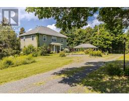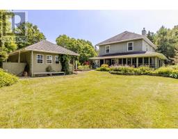 WELCOME to STONEFIELD: Built in 2008 but inspired by the grace and craftsmanship of an 18th-century Irish farmhouse, this remarkable residence (formerly a bed and breakfast) sits on 74 acres of serene countryside. Every detail tells a story, from custom trim and period-style doors, the flooring, lighting, and even a detached garage designed in keeping with traditional Irish architecture. The main floor offers a welcoming reception/office, chef’s kitchen with propane stovetop and walk-in pantry, formal dining and living rooms, a screened porch with garden views, and a primary suite with walk-in closet, 3-piece bath, and laundry. Upstairs, the landing features an opulent library with window seat, two guest rooms with ensuites, and a massive suite with seating area, vintage style fireplace and clawfoot tub. The lower level features an authentic IRISH PUB with wood bag, snug, fireplace and conversation area, stage with standup piano, and private walkout to 2 patios that are draped in lush greenery and canopies of mature trees. Outdoors, enjoy trails on your 74 acres, gardens, apple trees, fire pit, and bunkie. FEATURES: Forced-air propane heat (2022), central air, CanExcel siding, and detached garage. Perfect for a private residence, B&B, or event venue. (id:50886)