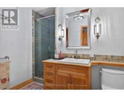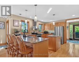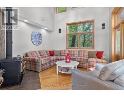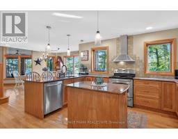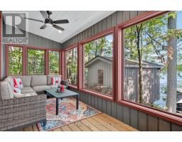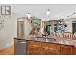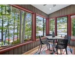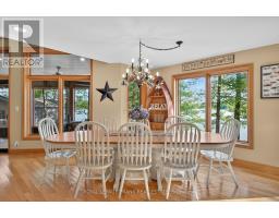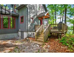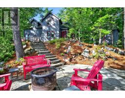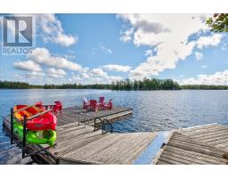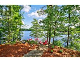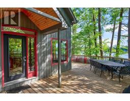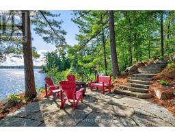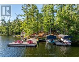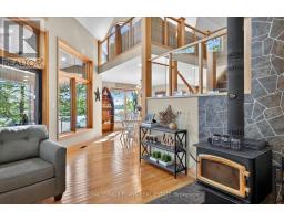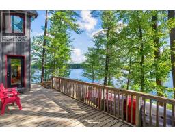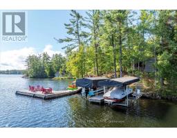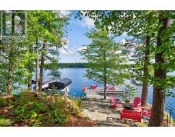This exceptional four-season lake home sits on rugged Canadian Shield on Lower Stony with sweeping lake and island views, towering pines, and clean, deep swimming frontage. The home features five bedrooms and four bathrooms, with a well-designed layout that includes a main-floor primary suite, open-concept kitchen and dining with granite countertops, vaulted living room with woodstove, and walkouts to a screened porch and expansive lakeside deck. Hardwood floors run throughout the main level, tying together the warm, natural aesthetic. Upstairs, two additional bedrooms, a full bath, and a spacious family room provide room for family and guests to enjoy. Outdoors, extensive stone landscaping leads to a firepit overlooking the lake. A large dock system with two boat lifts makes for effortless boating and ample space to enjoy activities at the water's edge. Located just 10 minutes north of Lakefield, this property is in one of the most sought-after areas of Stoney Lake. Offered turnkey with furnishings included, its ready to be enjoyed from the moment you arrive. Click "Multi Media", below, for aerial video, additional photos and more. (id:50886)