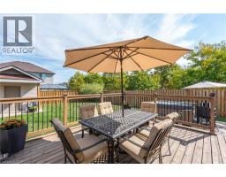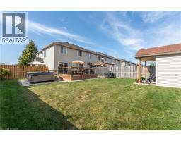 Beautiful Semi Detached! This fully finished home sits on a 45ft wide lot that is beautifully maintained! As you walk to the front door the stamped concrete walkway leads you past the charming veranda which is perfect for sitting out on summer nights. The main floor offers a bright eat in kitchen with updated granite, backsplash, stainless steel appliances. The bright dinette offers deep set windows for extra charm. The main floor offers a large living and dining area with hardwood flooring, gas fireplace leading to the wonderful large backyard perfect for entertaining! With a great deck, stamped concrete patio with hot tub, large custom shed this backyard is perfect for any family. The bedroom level offers a generous primary bedroom with walk in closet and freshly painted ensuite. Two more good size bedrooms, main full bathroom and bedroom level laundry. The finished basement is perfect for hosting movie or sports nights! Lots of storage space in the utility space of this home. Garage with inside entry. Shingles (2025). Across from Fairgrounds community park, easy access to schools, shopping. Road fee $115.95/month. (id:50886)