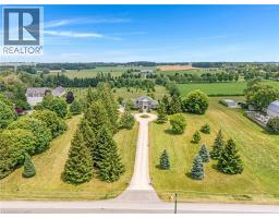 Welcome to 2865 Herrgott Road, a rare opportunity to own a Langdon Hall inspired estate on nearly 5 acres of pristine countryside. Evoking the timeless charm of Ontario’s iconic country retreat, this exceptional property blends refined architecture, privacy, and modern comfort, offering over 4,400 sq. ft. of beautifully finished living space with 5 bedrooms and 5 bathrooms. Step inside to a welcoming main entry that opens to a bright, thoughtfully designed layout perfect for both everyday living and elegant entertaining. The eat-in kitchen features a gas range, oversized refrigerator, and walk-in pantry, with direct access to an expansive composite deck with glass railing, the perfect setting for morning coffee or evening gatherings. The great room is filled with natural light, while the formal dining room with gas fireplace offers timeless charm. The main floor primary suite is a private retreat overlooking the backyard, complete with walk-in closet and a luxurious ensuite. Upstairs, two bedrooms each feature private ensuites and walk-in closets, while a versatile loft opens to an upper balcony with sweeping countryside views. The finished walkout lower level offers endless versatility, featuring a large rec room with custom wet bar, two additional bedrooms, an office or gym, and in-floor heating with gas fireplace, making this space ideal for multi-generational living. A grand concrete circular driveway leads to a 4 car garage, including a heated lower level garage with interior access. With A1 zoning, the expansive property offers endless potential-from adding a pool or creating your own resort-style retreat. Ideally located just 10 minutes to Waterloo, 8 minutes to Wellesley, and 15 minutes to Kitchener, this luxury estate offers the perfect blend of tranquility and convenience. Surrounded by nature, it's more than a home—it’s a true piece of paradise offering a lifestyle you won’t want to miss, in one of Waterloo Region’s most sought-after rural settings. (id:50886)