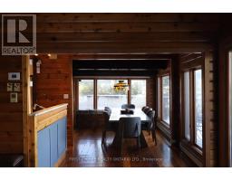 New Listing! This home is a truly exceptional retreat, with warm wood log interior, positioned with unobstructed water views on a premium in the ultra-private and sought after majestic Dunrobin Shores...where every day feels like an escape to nature's most peaceful and inspiring landscapes! From the moment you open the door, the craftsmanship and warmth of the home are unmistakable, with its rich cedar, exposed beams, and inviting architectural character that blends rustic charm with modern comfort. Note the renovated kitchen and bathroom! A spectacular 37-foot deck spans the entire length of the home, offering panoramic views of the Ottawa River and the Gatineau Hills-an ideal setting for morning coffees, golden sunsets, or gatherings with family and friends. Inside, wall-to-wall windows flood the interior with natural light, while the stunning floor-to-ceiling stone wood-burning fireplace becomes the heart of the home and a retreat year round. Numerous updates enhance the property, including a beautifully redesigned kitchen featuring sleek, modern cabinetry, stone countertops, and high-end appliances that make cooking a pleasure. A cozy four-season room which had been used as an office and a bedroom overlooks the front gardens. The walkout lower level expands your living space with a bright recreation room, bathroom, and workshop, along with a spacious patio door leading to the covered lower deck, where you can unwind rain or shine in either the soft tub... ready for use... or enjoy a quiet sitting area with a coffee and a book! Meticulous landscaping, mature trees, and thoughtfully curated gardens surround the entire property, creating a sense of tranquility and privacy rarely found so close to city conveniences. Located on prestigious Barlow Crescent-one of Dunrobin's most sought-after addresses-this home stands as one of its finest offerings, merging the very best of country living with easy access to every amenity. 20 Minutes to Kanata High Tech! (id:50886)