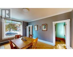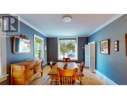 As you step through the front door, a welcoming foyer greets you, and the warmth of the original details invites further exploration. To the right, you'll find the dining room bathed in natural light. The century-home charm is undeniable, with high ceilings, detailed moldings, and original hardwood floors. The living room is expansive, offering endless possibilities. Built-in bookshelves provide the perfect backdrop for a cozy reading nook. The kitchen is a beautiful blend of old and new, featuring plenty of space for casual dining. There's an area for an eat-in kitchen table and a traditional woodstove, adding rustic charm while keeping the home toasty during the winter months. Laundry and a four-piece bath on the main level enhance the home's functionality. Just off the kitchen, you'll find a space that was once used as an office, but it could easily be transformed into a sunroom, den, or art studio and highlighted by its south-facing windows, which frame a lovely view of the backyard. Step outside, and you're in for a treat the patio offers a peaceful retreat for morning coffees, overlooking a picturesque backyard. Located just steps from the main intersection in Markdale, this home is in a prime location. You're within walking distance of essential services like the hospital and shopping. (id:50886)