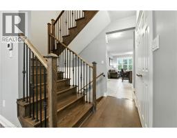 Welcome to 29 Riverwalk Drive, a beautifully upgraded freehold townhome backing onto Grindstone Creek in the heart of Waterdown. Built in 2020, this executive 3-bed, 3-bath home offers 2,745 sq. ft. of total living space (1,840 sq. ft. above grade) with a bright walkout basement and no rear neighbours. Step inside to find Red Oak-Charcoal hardwood floors, Series 800 interior doors, and Colonial trim that elevate every room. The kitchen is a chef’s delight—Quartz Calacatta countertops, LED under-valence lighting, 41” cabinetry, stainless steel appliances, and thoughtful storage including pot/pan drawers and a recycling pull-out. Upstairs, the primary suite features a walk-in closet, soaker tub, and separate shower. Two additional bedrooms share a full bath with Quartzite counters, and a second-floor laundry adds everyday convenience. California shutters are installed throughout. Enjoy morning coffee or evening sunsets from your walkout patio overlooking tranquil greenspace. With nearby trails, parks, and top-rated schools, this home offers a perfect blend of luxury, comfort, and nature — all just minutes from downtown Waterdown and highway access. (id:50886)