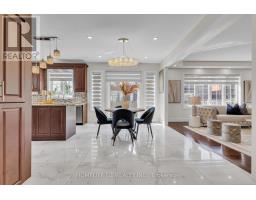 This fully upgraded home has 4500 sq. ft. of total living space on a premium corner lot with a backyard stretching 58 feet wide. This home welcomes you with a grand foyer and soaring 15-ft ceilings in the living room, framed by oversized bay windows that fill the space with natural light. The main floor showcases 24x24 marble flooring, custom metal picket railings, and over 100 pot lights across the main and second levels. A formal accent wall dining room with double door entry provides an elegant setting for entertaining, while the gourmet kitchen features three-inch granite countertops, built-in appliances, upper cabinet lighting, and spacious breakfast area. The kitchen flows into the family room, where another accent wall and fireplace create the perfect space for gatherings. Completing the main level are electric-powered blinds throughout and a full 3-piece bathroom with a stand-up shower. Upstairs, hardwood flooring runs throughout, with four generous bedrooms including a primary retreat with a 5-piece ensuite, a junior suite with its own ensuite, and two bedrooms sharing a jack-and-jill. The fully finished basement adds over 1,200 sq. ft comprised of three bedrooms, a 3-piece ensuite, abundant storage, and 60 additional pot lights. Exterior upgrades include a light brick and stone façade, exterior pot lights, and double side entries, completing this rare offering in one of Oakville's most desirable neighborhoods. (id:50886)
