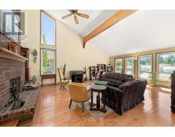 Space, character, and thoughtful updates define this expansive 4-bedroom home in Madoc, offering a total of 4,954 sq ft of living space. 3,196 sq ft above ground plus a full-height unfinished basement with 1,758 sq ft ready for your vision. Rarely does a home of this scale, quality, and character come to market in such a welcoming community. Perfectly set on a wide, landscaped lot with a circular drive, this property blends size, functionality, and timeless charm. Step inside to a bright foyer with a skylight and hardwood flooring throughout the main level. The living room is a showpiece, featuring striking vaulted ceilings with wood accents and a dramatic, double-sided, freestanding brick fireplace that anchors the space. The formal dining room glows beneath a real gold-plated chandelier, while the large kitchen, walk-in pantry, and breakfast area provide plenty of storage and prep space. A cozy den with a brick fireplace, a family room, a mudroom, and a 2-pc bath complete the main level. Upstairs, the primary suite features a walk-in closet and a spa-like ensuite with a soaking tub and glass-enclosed shower. Three additional bedrooms, a full bath, and upper-level laundry provide ease for the whole family. The lower level offers endless potential for your future rec room, home theatre, gym, or even an in-law suite. Recent updates include a Generac whole-home generator (2021), windows (2021), entrance renovation (2019), central vac (2017), eavestroughs (2022), hot water tank (2024), and driveway sealing (2023). Outdoors, enjoy a large deck, natural gas connection for your barbecue, landscaped yard, and mature trees offering privacy and shade. Located in Madoc, a town renowned for its charm and close-knit community, this property is within walking distance of cafes and shops, and has easy access to Highway 7, minutes from amenities. With an attached 2-car garage and parking space for at least 10 vehicles in the driveway, this home is as practical as it is impressive. (id:50886)