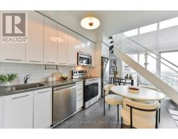 Step into Breathtaking Views from this sun-drenched, west-facing Penthouse unit, featuring dramatic 17ft ceilings with floor-to-ceiling windows. This striking two-story loft offers 720 sq. ft. of thoughtfully designed, open-concept living. The main floor presents a generous living and dining area, an elevated open kitchen with premium built-in stainless steel appliances, a two-piece powder room, and a private walk-out balcony that boasts an expansive view with sparkling lake views. A versatile nook beneath the stairs is ideal for a desk or pantry. The upper level is a luxurious master retreat, complete with custom his-and-hers closets with built-in organizers and a spa-like ensuite featuring a separate shower and soaker tub. This exceptional layout is perfect for a single or couple desiring ample space for a sophisticated work-from-home setup.Take advantage of resort-like facilities including: 24 hr concierge, full gym, party room, outdoor pool, rooftop deck with bbq's, games room, media room, sauna, and squash courts, bike storage and guest suites. Prime Mimico location: 3 min to the Gardiner Exp, 5 min drive to Mimico GO. Walk to the waterfront, walking trails, stores, groceries, public transit. Floor plans attached. One parking spot included. (id:50886)