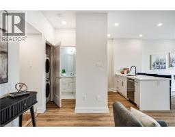 Built by Bevco Homes: Experience modern elegance with an open-concept main level that seamlessly blends style and functionality. The kitchen features a generous quartz island, soft-close cabinetry and brand-new appliances, setting the stage for effortless living. Enjoy the seamless transition from the kitchen to the dining and living areas, highlighted by expansive windows that bathe the space in natural light. Step out onto the covered balcony for additional outdoor enjoyment. The second floor boasts two well-appointed bedrooms, including a primary suite with a three-piece ensuite. An additional four-piece bathroom ensures ample convenience for all residents. Revel the sophisticated details such as smooth ceilings, a modern, carpet-free design, pot lights and oak stairs, handrails and spindles. Make the most of the 310-square-foot rooftop terrace, perfect for relaxing, entertaining or enjoying the panoramic views. This property offers the convenience of parking for two vehicles-one in the driveway and one in the private garage with direct access to the home. Additional visitor parking is also available. Conveniently located close to all amenities and the QEW. Common element road fee approx. $59.40/month. (includes water). Photos are of Model Home. (id:50886)