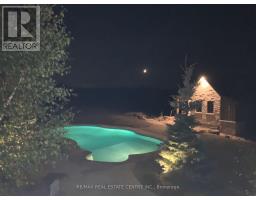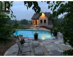 Stunning custom built country estate home on 30 acres of peace, privacy and tranquility. Located just west of Orangeville with easy access to major highways. Features quality workmanship and materials top to bottom. Roof updated (new shingles) October 2025. Extensive landscaping, pool, hot tub, pool house and patios. Chef's delight kitchen with center island overlooking front gardens. Lots of counterspace for the gourmet. Formal living and dining rooms. Cosy and comfortable great room with propane fireplace overlooking the rear grounds and surrounding countryside with walkout to the deck overlooking the pool, hot tub and pool house. Handy main floor laundry and 2 piece powder room with entrance to the garage and front patio. Main floor primary suite with walkin closet and spa like 4 piece ensuite. Upper level features two sun filled bedrooms and a 4 piece bath. Lower level recreation area features a unique stone/brick wood burning fireplace and a walkout to the patio overlooking the pool area. In floor heating in lower level. Ideal set up for inlaw suite or casual entertaining. 26' x 42' handy man shop with separate driveway and well. Suitable for home occupation business. Rogers Fibre optic internet available. Possibility for second dwelling on property (Township of Amaranth). Central metering hydro. 2 wells. This lovely home is built with pride of ownership and has been lovingly maintained and updated by original owners. (id:50886)