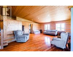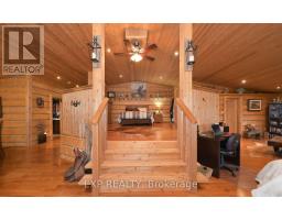 If the privacy & adventure of country living has been a dream of yours, this home, the property, the ponds, the forest trails and the surrounding areas will be your dream come true! This home offers so many incredible & unique opportunities for your family! Enjoy perfect privacy on this 96 acre property with 40 acres of tile drained farm land. As you drive down the beautiful winding driveway, you are welcomed home by several ponds and enchanting natural landscapes on either side. Custom built in 2010, the 2 family home perfectly suits its natural surroundings with a board & batten exterior, metal roof, wood trim finishes throughout the inside and a wood stove on both floors. The main floor unit features 3 large bedrooms, and an open concept space including large modern kitchen, dining room w/ walkout to the property & family room w/ cozy wood stove. Upstairs is your own private gym & the 2nd living unit, which includes gorgeous views of the property through so many windows, log walls, hardwood floors, beautiful custom kitchen with wet island & dual oven, open concept dining & family room & cozy raised bedroom. Potential income opportunities through: 1) the massive attached workshop 2) 40 acres of tile drained farm land 3) rental of the upstairs or main floor unit. So much to love! Come see for yourself. (id:50886)