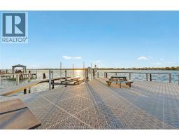 Experience true luxury waterfront living with this exceptional 3+2 bedroom, 3.5-bath custom-built home featuring soaring ceilings, Brazilian hardwood floors, and floor-to-ceiling windows that flood the space with natural light. The gourmet kitchen showcases custom cabinetry, an impressive butler’s pantry, and a great layout that flow to the elegant living and dining areas. The primary suite offers a private retreat with 2 walk-in closets and custom finishes , heated ensuite floors, a tiled shower, soaker tub, and double vanity. The lower level is designed for comfort and entertainment with in-floor heating, a spacious rec room with and impressive wet bar, gym, tanning bed, sauna, abundant storage space, and access to the heated attached garage. Step outside to your private resort-style oasis overlooking the waterfront, complete with a covered patio and cabana featuring an outdoor kitchen, 2pc bath, cozy gas fireplace, and hurricane shutters. Enjoy automatic screens on the cabana, back patio, and front porch for year-round comfort. The saltwater heated pool with tanning ledge, waterfall, and glass fencing offers a perfect blend of elegance and relaxation. A 90’ dock with composite decking and a 12,500lb boat lift provides the ultimate waterfront experience, while professional landscaping, full lighting system, heated garages, generator, greenhouse and powered security gates ensure complete privacy, quality, and luxury in every detail. (id:50886)