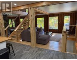 Welcome to this exceptional custom log home situated on over 4 private acres, directly across from beautiful Eagle Lake. Thoughtfully designed and fully winterized, this home offers year-round access with frontage on two sides of municipally maintained Angus Point Road. Just steps away, you'll find a 5-acre municipal waterfront property featuring a beach and boat launch giving you all the benefits of lakeside living without the added cost of waterfront taxes. Inside, the home has been updated with modern amenities while preserving its classic log home charm. With 3 bedrooms, a spacious loft, and 3 full bathrooms, there's plenty of room for family and guests. The walk-out basement adds even more functionality with a kitchenette and laundry area ideal for extended stays or multi-generational living. Soaring ceilings, large windows, and warm wood finishes throughout create a bright, inviting atmosphere that truly feels like a getaway. In addition, the property includes an impressive 1,200 sq ft garage with ample lower-level parking and a large upper level that's ready to be finished into a guest suite or rental space, complete with a separate entrance. Whether you're looking for a family home, a vacation retreat, or an investment opportunity, this property offers endless possibilities in a peaceful, natural setting. (id:50886)