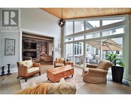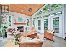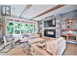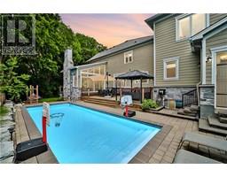 Welcome to one of the most unique properties in the sought-after Aldershot neighbourhood! This custom-built home offers 4,800 sq ft of finished living space on a rare 0.5-acre ravine-front lot, offering total privacy and a serene, natural setting. Designed and built by the owner (a custom home builder), the home was thoughtfully positioned to capture ravine views from nearly every room, with the 3-car garage located at the back. A grand two-storey entry features a barn board accent wall, two-sided gas fireplace, elegant music room, and a stunning open-riser staircase. Soaring 9-ft ceilings from basement to 2nd floor add to the spacious feel. Enjoy 4+1 bedrooms and 4+1 baths, with vaulted ceilings in 3 bedrooms. A sun-drenched 4-season sunroom with pine vaulted ceiling, gas fireplace, and floor-to-ceiling glass offers panoramic views of the ravine and saltwater pool. Quartz countertops and custom cabinetry are found throughout, along with site-finished hardwood, built-in speakers, and large windows bringing in natural light and glimpses of the lake. The expansive second-floor laundry room includes built-ins and a dedicated sewing desk. The finished basement with a side entrance provides in-law suite potential. Outside, enjoy your private backyard oasis with an inground saltwater pool, outdoor shower, and mature trees. Located minutes from downtown Burlington, the GO Station, major highways, and Hamilton. A rare opportunity to own a luxurious, nature-inspired retreat in the city. Driveway was paved in Fall 2024. Pool liner changed in June 2025. R.S.A. (id:50886)