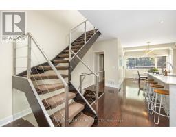 Rarely available modern 2 + 1 bedroom home backing onto the Don Valley ravine. The open concept main floor is filled with natural light from expansive front windows overlooking the trails, creating a seamless connection to nature right outside your door. Upstairs, two spacious bedrooms lead to a private rooftop patio the ultimate spot for entertaining or quiet evenings under the stars. The fully finished basement offers a flexible bedroom/office space with a walkout to the rear laneway and convenient carport parking. A unique opportunity to enjoy urban living with direct access to the Don Valley trail system, parks, and transit, all in a quiet, tucked-away setting. (id:50886)
