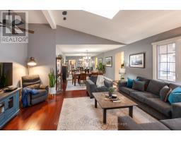 Rarely offered 4-bdrm executive split-level townhome backing onto greenspace in coveted River Ridge enclave-mature community where homes are so loved they seldom hit the market! Steps from Guelph Country Club & Royal Rec Trail, some of Guelph's most scenic walking & biking trails, this renovated home blends privacy of nature W/convenience of urban living. With over 4 finished levels this home offers flexible space for growing families, work-from-home professionals, downsizers or those looking for multigenerational potential. Kitchen W/custom cabinetry W/glass display uppers, B/I wine rack, large pantry, S/S appliances, quartz counters & backsplash, pendant lighting & island W/bar seating. DRW/hardwood & bay window. 2-storey LR is bathed in natural light from expansive windows. Versatile main floor bdrm offers flexibility for guests or remote work. Upstairs primary bdrm offers bay window & renovated ensuite W/quartz vanity, makeup/prep counter & W/I shower. Another large bdrm & updated 4pc bath round out 2nd level. On lower level (above grade) enjoy FR W/fireplace & oversized windows-ideal for relaxing, entertaining or converting to your dream studio, gym or creative space. Finished bsmt adds 4th bdrm, bonus room/den, 3pc bath & storage room. Private front courtyard offers perfect spot for morning coffee or winding down while the 10 X 16 deck provides add'l outdoor space for relaxing & entertaining. Rare 2-car garage W/interior access & lots of visitor parking. Major exterior updates: windows, doors, roof & updated deck within last 5yrs. Freshly painted in last 5yrs & California shutters & blinds throughout. Newer appliances: 2023 LG fridge, 2020 Maytag DW,2022 LG washer/dryer, Maytag dbl oven & new HWT & softener. Condo corp takes care of everything: roof, windows, doors, deck, patios &exterior maint. River Ridge residents enjoy heated outdoor pool, tennis & pickleball courts! River Ridge is not just a place to live, it's a community people stay in for decades. (id:50886)