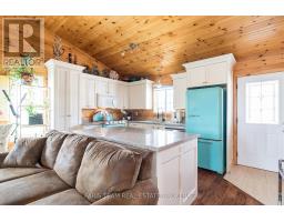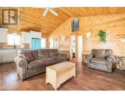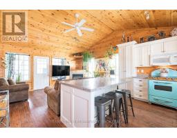 Top 5 Reasons You Will Love This Home: 1) Welcome to life in the gated community of CountryLife Resort, where every day feels like a getaway, residents enjoy an impressive array of amenities, including indoor and outdoor pools, a recreation centre, splash pad, bouncing pad, tennis and pickleball courts, mini golf, and a private walking trail leading straight to the sandy shores of Wasaga Beach 2) This charming chalet offers easy main level living with two bedrooms and a full bathroom, along with an open-concept kitchen and living area highlighted by cathedral ceilings and a cozy gas fireplace, while the bright four-season sunroom walks out to a wraparound deck overlooking a tranquil pond 3) The beautifully finished kitchen makes meal prep a delight, featuring granite countertops, a central island perfect for casual meals, a new dishwasher, and eye-catching Tropical Blue Elmira Stove Works appliances that add timeless character and charm 4) Start the day with coffee on the covered front porch and wind down on the spacious back deck, taking in peaceful pond views and the beauty of the surrounding nature, with the added benefit of a newly installed outdoor shower adding a touch of luxury and convenience, perfect for rinsing off after a beach day or cooling down on warm summer afternoons 5) Whether you're seeking a vacation home or retirement retreat, this location offers it all, close to grocery stores, cafés, and shops, with Collingwood, Blue Mountain, and the GTA just a short drive away. 890 fin.sq.ft. (id:50886)
