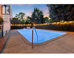 This beautifully appointed 3+1 bedroom, 2 bathroom bungalow offers the perfect blend of modern comfort and family-friendly living. The open concept main floor creates a seamless flow between the large, modern kitchen and the bright, spacious living room, where soaring high ceilings and expansive windows flood the space with natural light. The thoughtfully designed layout includes three cozy bedrooms, ideal for growing families, and a stunning updated bathroom featuring a beautiful dual vanity and sleek glass shower. The open concept design maximizes space while maintaining distinct living areas for both relaxation and entertaining. The finished basement is truly a showstopper, boasting a large recreation room with its own separate entrance, and a versatile flex room that can easily serve as a home office, guest bedroom, or whatever your lifestyle demands. The lower level is completed with a convenient 3-piece bathroom and bar, making it ideal for entertaining or even conversion to an in-law suite. Step outside to discover your private retreat featuring a large, stunning patio with elegant glass railings overlooking a beautiful inground pool. Newer fencing and mature hedges provide exceptional privacy, creating the perfect sanctuary for summer relaxation and year-round enjoyment. Practical features include an attached garage and storage shed, providing ample space for vehicles, tools, and seasonal items. This exceptional property offers the rare combination of move-in ready comfort, entertaining potential, and investment opportunities all in one of Thorold's most desirable locations. Don't miss this opportunity to call Burleigh Hill home! (id:50886)