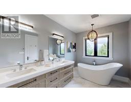 Welcome home to this stunning Executive estate! Spanning 4,926 square feet of sheer luxury, this home is meticulously handcrafted with curated, high-end materials true masterpiece nestled on a sprawling 1.75-acre lot. Enjoy unparalleled privacy and serenity.A charming circular driveway leads to the grand entrance, showcasing the home's timeless architectural style. The exterior blends robust stone, brick, and high-end materials, featuring huge windows that flood the interiors with natural light and offer breathtaking views. Inside, the grand foyer boasts soaring ceilings and elegant finishes: rich marble flooring, stunning custom millwork, and designer lighting. The open-concept main level flows seamlessly into the chef's state-of-the-art gourmet kitchen, complete with top-of-the-line appliances, a grand central island, and bespoke cabinetry. A sun-drenched, cozy breakfast area with floor-to-ceiling windows adjoins the kitchen. The main living room, a statement in comfort, features a welcoming gas fireplace and distinctive waffle ceilings. Large sliding doors open to a fantastic covered outdoor living space-perfect for sophisticated gatherings with sleek glass railings and recessed lighting. Working from home is easy in the dedicated office with custom-built-ins. For guests, the private main-floor suite is a true retreat, offering its own sitting area, a spa-like bathroom with a walk-in shower, and a huge walk-in closet. Upstairs, several spacious bedrooms each boast a private en-suite bathroom and walk-in closet, maximizing comfort and views. This home masterfully blends luxury, function, and natural beauty, creating a true oasis that awaits its new owner. (id:50886)