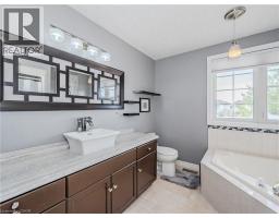 Gorgeous former Model Home backing onto Conservation! This Gatto built south end home has so much to offer in its practical and spacious floorplan with 4 bedrooms and a fully-finished walkout basement. Close to schools, shopping and moments from the 401, and with a new community centre just being completed this amazing neighborhood offers every amenity. Enjoy the view from the comfort of your covered porch, the front has lovely gardens with minimal maintenance, a mix of stone and brick and custom garage doors. The interior offers space for everyone with the separate living room and family room divided by a double-sided gas fireplace. The dining room adjoining the kitchen is perfect for your family gatherings and special occasions. The kitchen has ample space and has a movable island in the adjoining dinette, features Stainless Steel appliances and a walkout to the wonderful bright deck. The backyard offers a beautiful view of conservation and accesses the walking trails leading to Preservation Park. The second level features a spacious primary bedroom with full 4 piece ensuite with a corner soaker tub with jets, stand up shower with bench and walk-in closet. Another 3 large bedrooms and full 4 pc bathroom are nicely spaced out on the second level. The bright basement is fully finished with a bedroom currently configured as a home office as well as 3 piece bathroom with tiled shower. Featuring ample natural light throughout, a neutral colour palette and every amenity a family could want! (id:50886)