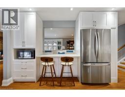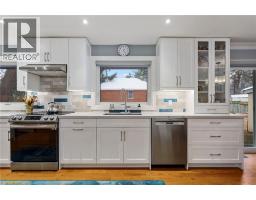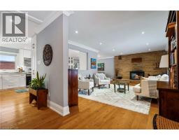 Tucked away on a quiet, private street yet steps from University Plaza, the Rail Trail, and just minutes to McMaster University and Hospital, this extraordinary 4-bedroom, 2-bath, four-level side split offers the perfect blend of serenity and convenience in the heart of Dundas. Set on a beautifully landscaped 95' x 125' lot with a stylish stucco façade, the home is flooded with natural light throughout, highlighting its warm and inviting spaces. The main floor features hardwood floors flowing through a bright living room with a charming bay window and stone fireplace, a dining room with sliding doors to the backyard, and a modern kitchen with quartz countertops, abundant cabinetry, and stainless steel appliances—ideal for cooking and gathering. Upstairs offers three generous bedrooms and a luxurious 4-piece bathroom with a double vanity and oversized shower. The lower level provides exceptional versatility with a cozy family room showcasing a gas fireplace, a second full bathroom, and an additional bedroom with a walkout to the private backyard—perfect for guests, in-laws, or a home gym. The fully finished basement expands your living space with a spacious recreation room, a large laundry room, and abundant storage. Outside, the fully fenced yard is designed for relaxation and entertaining, featuring mature landscaping, a full-length interlocking patio, and convenient garage access. With its unbeatable location, beautiful updates, and thoughtful layout, this home is a rare Dundas find you won’t want to miss. (id:50886)