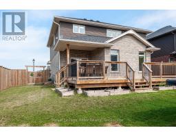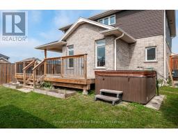 This nearly new build, move-in-ready home offers modern design, premium finishes, and comfort. Built by Pinnacle Quality Homes, this corner-lot residence in one of Stratfords family neighbourhoods delivers approximately 2,500 sq. ft. of stylish living space.The open-concept main floor boasts a chef-inspired kitchen with stone countertops, a chic tile backsplash, and abundant prep and storage space. The kitchen flows seamlessly into the dining and living rooms, anchored by a cozy gas fireplace. Sliding doors open to a wrap-around deck overlooking a fully fenced backyard, complete with gas BBQ hookup and private hot tub ideal for entertaining or unwinding under the stars. Upstairs, four generous bedrooms include a luxurious primary suite with walk-in closet and spa-like 5-piece ensuite featuring a glass shower and oversized soaking tub. The finished lower level adds 750 sq. ft. of versatile living, perfect for family movie nights with a built-in projector, drop-down screen, and convenient 2-piece bath. Additional features include main floor laundry/mudroom, a double car garage, private driveway, Avon school district, parks, advanced water filtering system and neighbourhood amenities. This home is truly move-in ready just unpack and start living. Don't miss your chance to own this exceptional property in a vibrant, family-friendly community. Contact your REALTOR today to schedule a private showing! (id:50886)