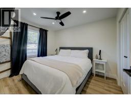 This beautifully renovated from top to bottom detached bungalow backs onto a peaceful park with a basketball court just steps away. Every detail has been thoughtfully updated, including a stunning modern kitchen, stainless steel appliances, quartz countertops, luxury flooring, stylish trim, pot lighting, attractive bathrooms, mechanics in heating, central air, plumbing, wiring, +++. The finished walk-up basement has a separate entrance that offers great income potential for a private in-law suite or basement apartment. The thought would be to make a common laundry area in the main floor to basement stairway and put a kitchenette in the unfinished utility room where the laundry area is now. There is also a long driveway that would accommodate four vehicles, and the oversized 12'6 x 22'6 garage with hydro is perfect for a workshop or hobby space. Located in a quiet, family-friendly neighbourhood, this home is just a short walk to a bus stop, mosque, bakery, excellent schools, scenic trails, and all essential amenities. An ideal opportunity for first-time buyers looking for a move-in-ready home with modern appeal and outstanding value. (id:50886)