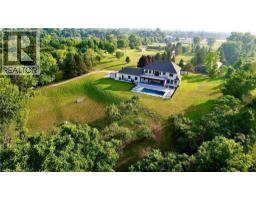 Presenting a once in a lifetime property. Welcome home to the iconic Falkland Springs Estate at 30 Brant County Highway 2, Brant. A generational retreat on over 10 acres of scenic countryside. Custom built in 2024, this elegant showpiece is perched atop a breathtaking landscape—a legacy property offering unmatched privacy and grandeur. Equipped with outbuildings and ponds, start the tour through a gated entry that leads up a winding and fenced road. Commanding a staggering 7472 sq ft en masse, with nearly 2000 sq ft in the oversized 4 car garage and 7100 sq ft of which is masterfully crafted finished living space. The home radiates timeless sophistication. Find 6 bedrooms and 6 bathrooms including a separately accessed and full in law suite and full kitchen. Enter the home into a bright and inviting foyer. To the left, a richly appointed office with custom built-ins and a gas fireplace sets a refined tone. On the right, an elegant dining room showcases intricate ceiling details, ideal for formal gatherings. The heart of the home is the open-concept kitchen and living room. Coffered ceilings and a cozy gas fireplace create warmth, with sight-lines of private resort-style backyard—complete with an outdoor kitchen, covered patio, gas fireplace, and heated saltwater pool. The chefs kitchen outfitted with high end, built-in appliances. It seamlessly blends functionality with luxury with an abundance of custom cabinetry and ample counter space. Upstairs enjoy a coffee bar leading into the primary suite with walk through closet, a stunning en suite and a balcony overlooking the pool and mature trees. The bright basement is home to the secondary suite but is still versatile and has room for the whole family! Enjoy an additional rec room, a sauna with plenty of seating and a dedicated theatre room. This home has it all! For the hobbyist the larger of the outbuildings was once a hatchery is 5387 sq ft. For the discerning buyer; don’t wait, begin your legacy today. (id:50886)