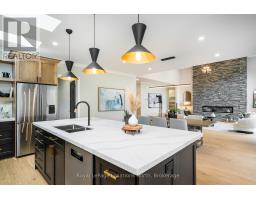 $212.91 MonthlyExperience the charm of a unique floor plan that makes this golf course bungalow both welcoming and exceptional. With over 2,200 square feet of thoughtfully designed living space, the home feels even more expansive thanks to its spacious front entrance and breathtaking great room. A stunning 14-foot-high stone feature wall anchors the open-concept living area, complemented by an elegant linear fireplace that adds warmth and drama. Many of the design details have been carefully curated by an interior designer to create a warm, earthy palette, featuring two-tone kitchen cabinetry, white oak flooring, and Benjamin Moore paint throughout. Stylish, modern lighting selections further elevate the home's custom aesthetic. The great room opens to a covered backyard retreat -- an ideal space to relax and take in the tranquil views of the manicured greens and mature trees of the Meaford Golf Course. Solid wood, three-panel interior doors -- extra tall and painted black -- are paired with upgraded gold-tone hardware, adding a refined touch throughout. The generous primary bedroom offers sliding door access to the backyard and golf course views. Two additional bedrooms -- both bright and spacious -- share a sleek four-piece bathroom. One of these rooms is perfectly suited for use as a home office or cozy den. All bathrooms feature high-end, contemporary finishes. Skylights in the kitchen bring in additional natural light, while pot lights throughout ensure a bright and welcoming atmosphere. A custom mudroom off the garage offers practical, organized storage. The exterior showcases a striking blend of wood and cultured stone, with a stamped concrete driveway leading to modern windowed garage doors. Comfort is top of mind with hydronic in-floor heating in both the garage and lower level. (id:50886)