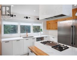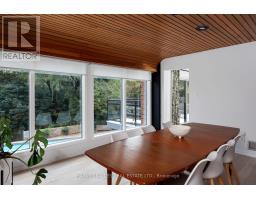 Say yes to the absolute best; this Markland Wood mid-century modern home is the pinnacle of style and comfort with unique details and a timeless aesthetic. Modern living and beautiful mid-century modern architecture? Check! Close to every amenity imaginable? You've got it! A beautiful backyard paradise on a ravine lot and an inground pool that makes you feel like you're on a tropical vacation every day, all day? Naturally. A brand-new mud room with direct access to the garage and side entrance? Oddly specific ask, maybe but yes, that too! Your new dream house offers so many perks that you may never need to board an airplane again. Designed by Award Winning Architect, Anthony Ferracuti (Global Architects), this 4+1 bedrooms, 3.5 bathrooms, plus a half bath home provides room to spare. The eat-in kitchen comes with professional-grade Frigidaire and Miele appliances, while a walkout basement makes entertaining a breeze, with its own kitchen, dining area, lounge spaces and sauna. Community features include Neilson Park Creative Centre, Markland Woods Golf Club, and walking/bike trails along the Etobicoke Creek Ravine (and CF Sherway Gardens, of course!) The home is also in the catchment area of top-rated schools, including St. Clement Catholic School. With an oversized pie-shaped lot, opportunities for outdoor enjoyment open up. This home was made for making memories. With an expansive primary bedroom complete with its own sitting area and a four-piece ensuite, it's hard to pick a favourite feature in this glorious oasis. This is your perfect home for everyday luxury. (id:50886)