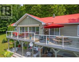 Welcome to your year round waterfront oasis on Lake Cecebe, one of five lakes connected to become the premier lake chain in the area featuring over 40 miles of boating and lake enjoyment! This bright, open concept bungalow with warm pine accents features south western lake views and expansive decking and sitting areas on the lake side. Renovated since purchase, this over 2200 sq. ft. home also features granite countertops, huge main bathroom with walk-in shower, and large dining room with lake views. Three bedrooms on the main floor with the primary having a walk out to the lakeside deck. Bright lower level features a family room with walk out to a covered sitting area and a WETT certified wood stove to cozy up to on chilly spring mornings. Also located in the lower level is a huge additional bedroom complete with full bathroom and laundry. Walk out of the home down the gently sloped lot to the sand-bottomed shoreline and extensive floating dock with plenty of room for everyone. Just a short drive outside the welcoming village of Burk's Falls and the highway, this home is close to all amenities to add convenience to your life. (id:50886)