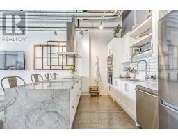 Welcome to one of Liberty Village's most sought-after addresses. This beautifully renovated one bedroom loft offers approximately 808 sq. ft. of stylish, open-concept living space that perfectly blends industrial character with modern luxury. Featuring soaring 13-ft ceilings, floor-to-ceiling windows, and exposed ductwork, this sun-drenched suite captures the authentic essence of loft living. The beautifully upgraded kitchen is a showstopper with top of the line Bosch and LG Stainless Steel Appliances, a large island with granite countertops, sleek cabinetry, perfect for cooking, entertaining, or casual dining. The spacious open layout flows seamlessly to a private balcony, ideal for enjoying morning coffee or evening BBQ. This rare offering includes one parking space conveniently located on the same level as the unit, plus one locker for additional storage. Residents enjoy the convenience and peace of mind of a 24-hour concierge and exceptional building amenities within one of Toronto's most iconic hard loft conversions. Located in the vibrant heart of Liberty Village, you're just steps to grocery stores, banks, cafes, restaurants, gyms, and the TTC, offering everything you need right at your doorstep. Experience the perfect combination of heritage charm and modern comfort in this exceptional Toy Factory Loft. (id:50886)