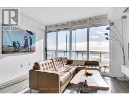 Welcome to one of the most sought-after and functional layouts in the building. This upgraded suite features floor-to-ceiling windows and 9-foot ceilings, flooding the home with natural light and showcasing breathtaking south-facing views of Lake Ontario the moment you walk in. The open-concept living area includes a modern kitchen with full-size appliances, a spacious living room with a walkout to the oversized balcony, and a dining area perfect for entertaining. The primary bedroom offers custom double closets, a 4-piece ensuite, and its own balcony access. The second bedroom features a custom closet and a built-in vanity or desk area, ideal for getting ready or working from home, while the den provides an additional workspace or extra storage. Comes with one parking space and a locker located together on P1, conveniently next to the elevator. Enjoy resort-style amenities including 24-hour concierge, a state-of-the-art gym with full weight and cardio equipment, wet and dry saunas, yoga studio, theatre room, outdoor courtyard with BBQs and lounge, party room, billiards, kids' play zone, two guest suites, and a rooftop pool with Jacuzzi offering panoramic views of the city and lake. Located in a vibrant lakefront community steps from transit, shopping, dining, entertainment, and easy highway access - everything you need is right at your doorstep. (id:50886)