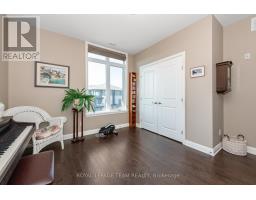$734.84 MonthlyWelcome to "The Elements at Richardson Ridge" -- an exquisite residence in the sought-after Kanata Lakes community. This luxurious top-floor unit offers 2 spacious bedrooms, 2 full bathrooms plus a den, all bathed in natural light from oversized windows and enhanced by 9-foot ceilings and hardwood floors throughout. The stylish open-concept kitchen features a breakfast bar, stainless steel appliances, quartz countertops, tile backsplash, and modern cabinetry. Primary suite boasts a spa-like 4-piece ensuite with double sinks, quartz countertops, and a generously sized shower. The primary custom closet is designed for optimal organization. The second bedroom also has custom shelving in the closet. Enjoy breathtaking views of the Heritage Richardson House, the private clubhouse for residents. This unit also includes a dedicated storage locker and an underground heated parking spot for added convenience. The building is fully accessible, with a large elevator and sloped ramps leading to the front entrance. Within walking distance, you'll find the Signature Centre and Kanata Centrum for all your shopping needs, as well as the beautiful 4 km Carp River Conservation area perfect for walks or bike rides, just steps from your front door. Also close to Kanata's North hi-tech district. This is a non-smoking condominium including in all units and common areas. 24 hrs irrevocable on offers. (id:50886)