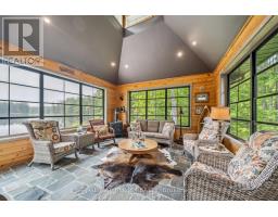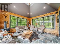 Welcome to a truly rare gem 21.25 acres of unspoiled natural beauty, nestled on the shimmering shores of Kasshabog Lake. This custom-built 2014 cottage was thoughtfully designed to blend into the surrounding landscape, offering a peaceful retreat for those who seek quiet mornings, forest trails, and the timeless magic of waterfront living.Whether you are casting a line for Bass, Pickerel, or Muskie, or simply soaking in the breathtaking lake views from nearly every room, this property is a haven for outdoor enthusiasts and cottage lovers alike. Wander along the private trails through the woods, discover two serene ponds rich with wildlife, and listen to the gentle flow of a seasonal creek from the comfort of your sunroom.Enjoy sunset dinners on the pondside patio as turtles bask nearby and loons call in the distance. In fall, curl up beside the cozy gas woodstove as migrating birds pass overhead. The lakeside stone patio invites you to swim, paddle, or simply sit still and take it all in Inside, the heart of the home is a bright, modern kitchen made for gathering whether its weekend breakfasts or lakeside feasts. Two lower-level bedrooms provide private space for guests or family, while the main-floor and primary suite offers comfort and seclusion with 238 feet of private waterfront, a 768 sq. ft. garage with woodstove, perennial gardens, forest trails, and proximity to Crown Land, snowmobile and ATV trails, this property offers the best of both worlds: a vibrant cottage lifestyle and the soothing presence of untouched nature. If you dream of a place where the water sparkles, the pines whisper, and every season brings new beauty this is it. Note - an extra 1000 feet approximately of additional waterfront on the pond side of property. Additional features - Bell Roof & Bell room design on the house, Eye Brown Windows in living room & cupla windows in the entrance way and sunroom just look up to see the beauty (id:50886)