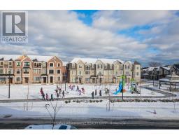 Ideally located directly across from a community park with playground and walking paths, and just steps from the newly built Harvest Oak Public School, this well-maintained executive townhouse offers an excellent setting for families seeking a safe, convenient, and welcoming neighbourhood.Now in its second year of occupancy, the home features 9-foot ceilings on both the first and second floors and hardwood flooring throughout. A high-efficiency geothermal heating system provides comfortable, energy-efficient living with no gas cost.The home offers a practical 3+1 bedroom, 2.5 bathroom layout designed with family living in mind. The main level includes a bright enclosed office with glass doors, ideal as a home office, study area, or children's homework space. An elevated front porch provides a comfortable and secure entry.The second level features a modern kitchen with upgraded cabinetry, an oversized four-door stainless steel refrigerator, a stone island, and a large pantry-perfect for family meals and everyday living. The breakfast area opens to a spacious balcony, while the living room faces the park, offering open views and excellent natural light. A powder room is also located on this level for added convenience.The third floor includes a spacious primary bedroom with high ceilings, a private balcony, a park-facing window, and a walk-in closet with natural light. The ensuite bathroom features a large glass shower and a wide vanity. Two additional bedrooms share a well-designed main bathroom. Laundry with Samsung washer and dryer is conveniently located on this floor.With easy access to parks, schools, shopping, and major transportation routes, this home provides a comfortable and low-maintenance lifestyle in one of Oakville's most family-friendly communities. (id:50886)