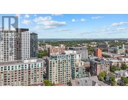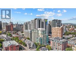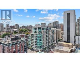 Bright and modern, the Largest 1-bedroom + den, 1-bathroom condo. Oversized Underground Parking with private bike rack. Located in the heart of downtown Ottawa, steps from the University of Ottawa and the Byward Market. The open-concept living space is highlighted by a stylish kitchen featuring a centre island with a breakfast bar, granite countertops, stainless steel appliances, and pot lights. The freshly painted interior offers a warm and inviting atmosphere, complemented by custom blinds and drapes. The spacious primary bedroom includes swing doors to the closet, while the den provides a versatile space perfect for a home office or additional storage. The full bathroom features a deep tub/shower combo with an under-mount sink and granite counter. Enjoy the convenience of in-unit laundry, underground parking, and a storage locker. Step outside onto the sun-filled balcony, perfect for savouring morning coffee or unwinding in the evening. With easy access to shopping, dining, entertainment, and public transportation, this condo is ideal for professionals, students, or investors. Book your private showing today! Parking P3-34 (id:50886)