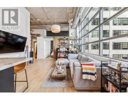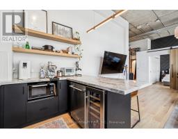 $600.89 MonthlyStep into a truly unique home at the iconic Tip Top Lofts. This fully renovated, light-filled suite stands apart with rare large windows that stretch the entire length of the unit - including a windowed bedroom, a feature seldom found in the hard loft portion of the building. With soaring 13 ft 2 in ceilings, the space feels bright, airy, and effortlessly stylish. The kitchen has been completely reimagined around a sleek peninsula island, perfect for casual dining or entertaining. Natural quartzite stone runs throughout the entire unit - in both the kitchen and bathroom - adding timeless beauty and durability. A built-in wine fridge, designer lighting, new flooring, and custom cabinetry elevate the home even further. The spa-inspired bathroom features heated floors, Kohler fixtures, quartzite counters, and striking Buster & Punch hardware. Custom 1928 Workbench doors in both the bathroom and bedroom pay homage to the building's heritage, while a custom bedroom feature wall and motorized blinds add comfort and sophistication. A generous mezzanine sits above the bathroom, offering endless versatility. A custom 1928 Workbench ladder system was also designed and installed to provide seamless access to the mezzanine and upper storage areas. Additional storage is thoughtfully integrated above the laundry closet and front foyer, alongside a custom front cabinet with added seating and shelving. This loft also includes a rare convenience: a parking spot already equipped for EV charging (Tesla Charger is excluded). Every detail has been considered in this top-to-bottom renovation, blending craftsmanship with functionality for a truly elevated loft lifestyle. A rare opportunity to own a beautifully redesigned, character-rich home in one of Toronto's most celebrated historic buildings. (id:50886)