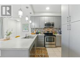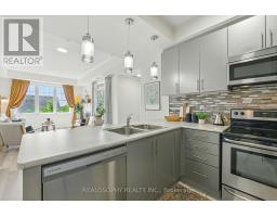 $445 MonthlyIntroducing a beautiful and bright, well-laid and comfortable two bed + two bath + two parking, corner unit in the very walkable neighbourhood of Oakville's Uptown Core. In the southwest building of the Oak Park Towns, this light-filled suite not only lives large on the interior at nearly 1100 sq ft, but also offers wonderful panoramic views from a lovely covered terrace. Entering into a tucked-away foyer, the condo suddenly gives way to an open concept kitchen + living space that benefits from unabated, sunny, south exposure with space to gather or the room to unwind. For the home cook, a built-in pantry elevates kitchen storage without making a sacrifice of space and sports stainless steel, full-size appliances. The combined living + dining area walks out to the outdoor entertain and relax space, benefiting from sight-lines overlooking a quiet Oakville neighbourhood. This view is one that will last. A split bedroom layout offers quiet and privacy for each room. The primary bedroom is king-sized with an ensuite bath and well outfitted walk-in closet. An XL second bedroom has a deep closet, more sunny south exposure, and no longer does one worry about a guestroom OR an office - you can simply do both. Included is a full garage with attached storage room, and an additional parking space on a private drive. All your daily conveniences are a short walk away and connectivity is paramount with quick trips to the QEW, 403, 407, Oakville Place, and GO Train station. Oakville Transit at the door. With 9-foot ceilings, incredible value for size, covered parking for two, sunny exposure, plus a legacy view, this one checks the boxes. (id:50886)